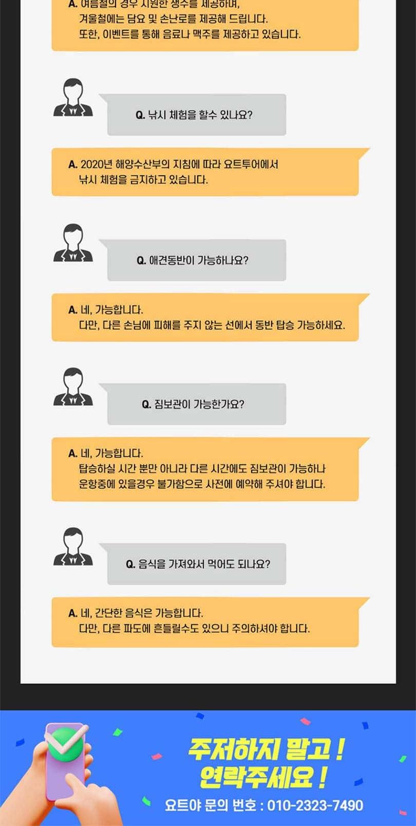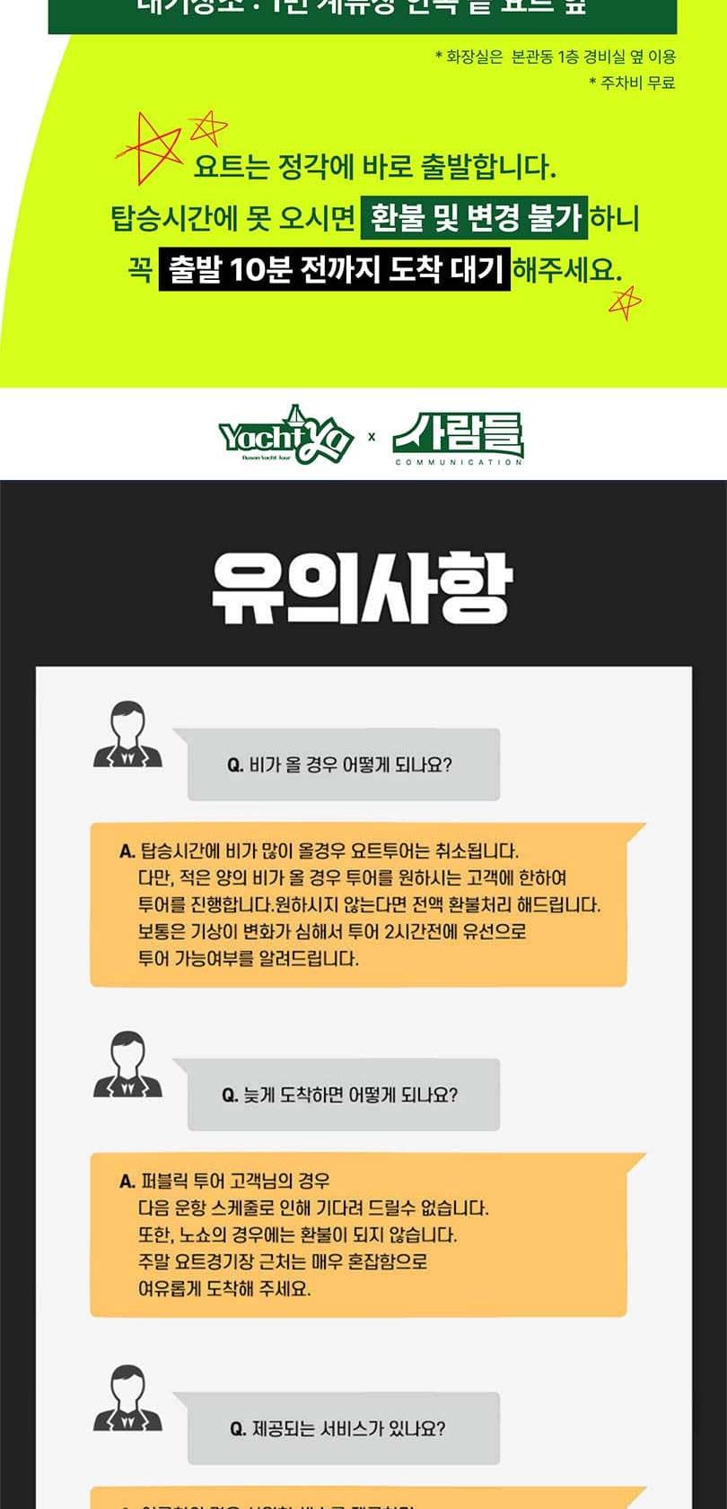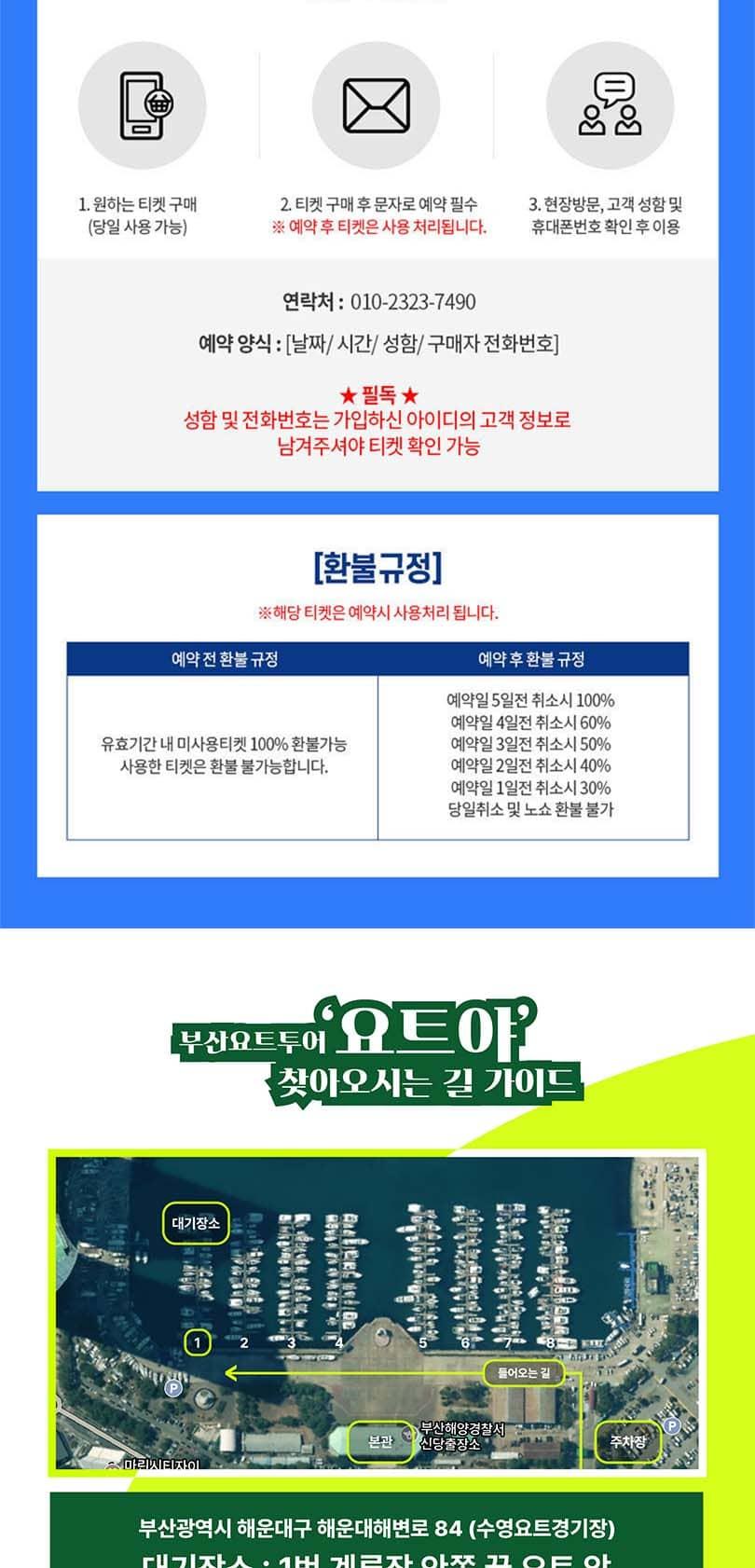 * 1시간 타임이므로 2시예약시 10분전 1시50분까지는 수영요트경기장 요트야 앞으로 오셔야합니다.