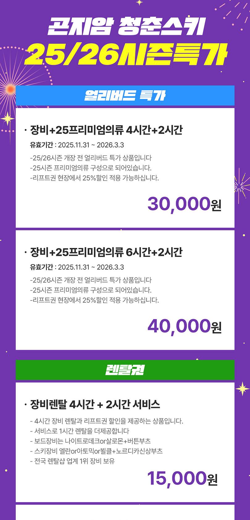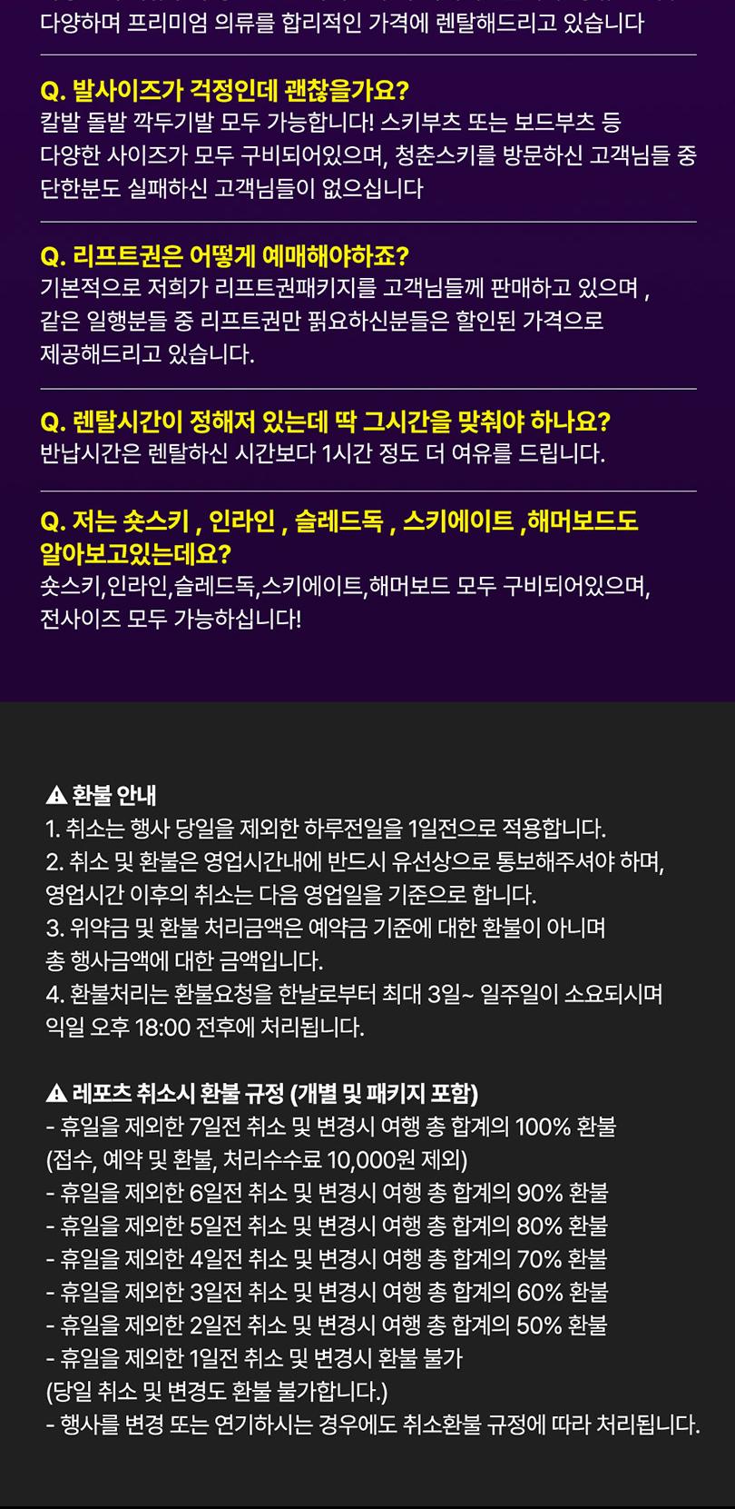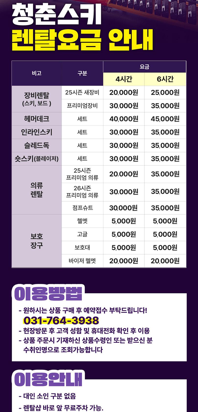 * 렌탈샵 상품으로, 스키장 개장 및 폐장 일정에 따라 유효기간이 달라질 수 있습니다.
