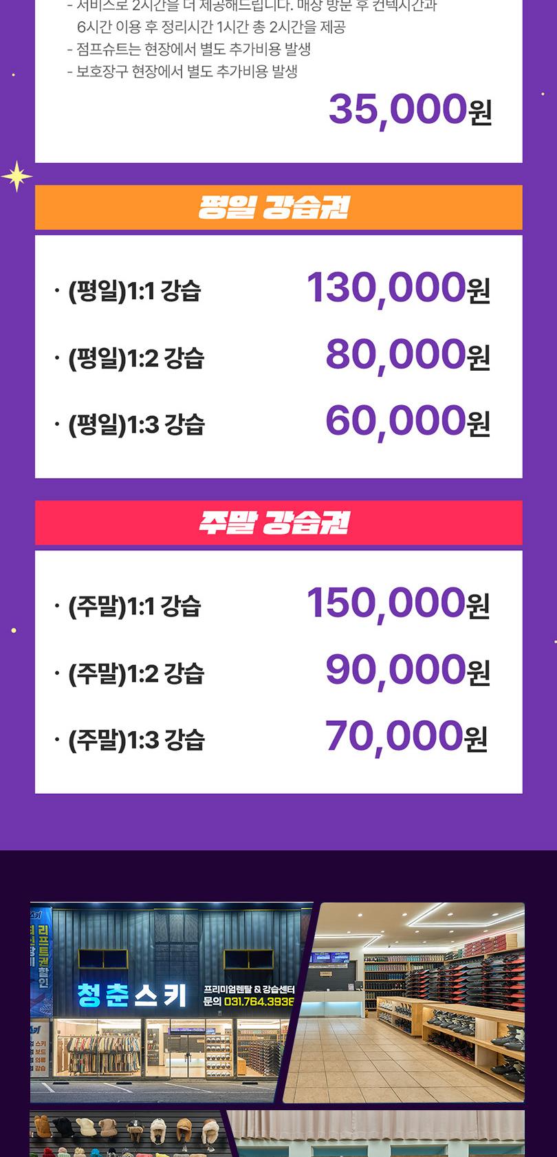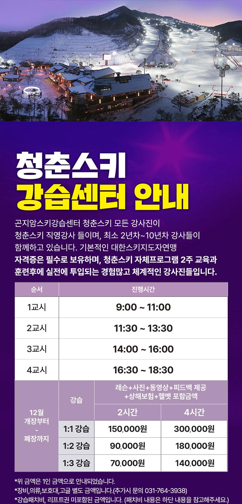 * ※ 현장 예약 현황에 따라서 강습 예약이 불가할 수 있어 티켓 구매 후 유선문의 필수