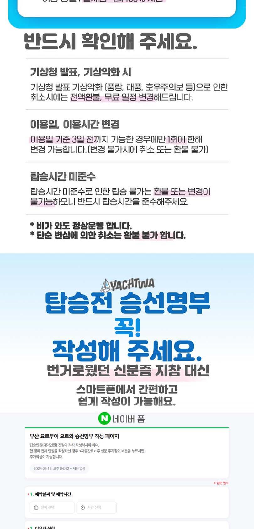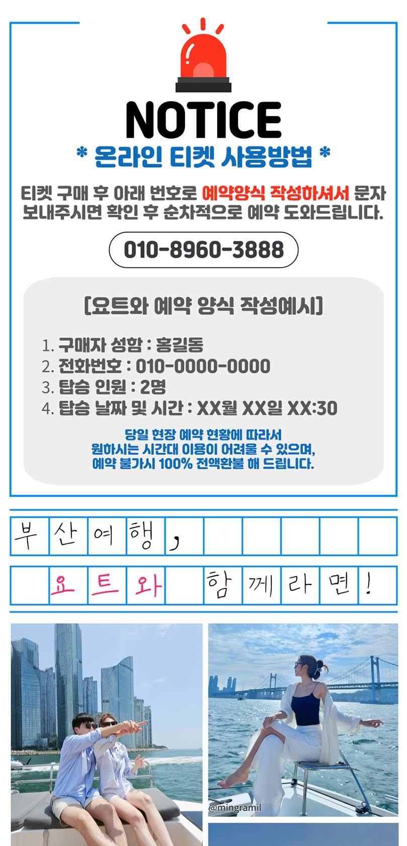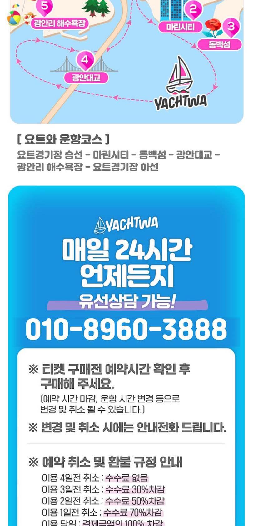 * 4. 티켓 구매 후 유선으로 이용일 및 이용시간 예약 필수기상악화로 인한 운항 취소시 전액 환불 되며, 취소 변경 모두 가능하십니다.