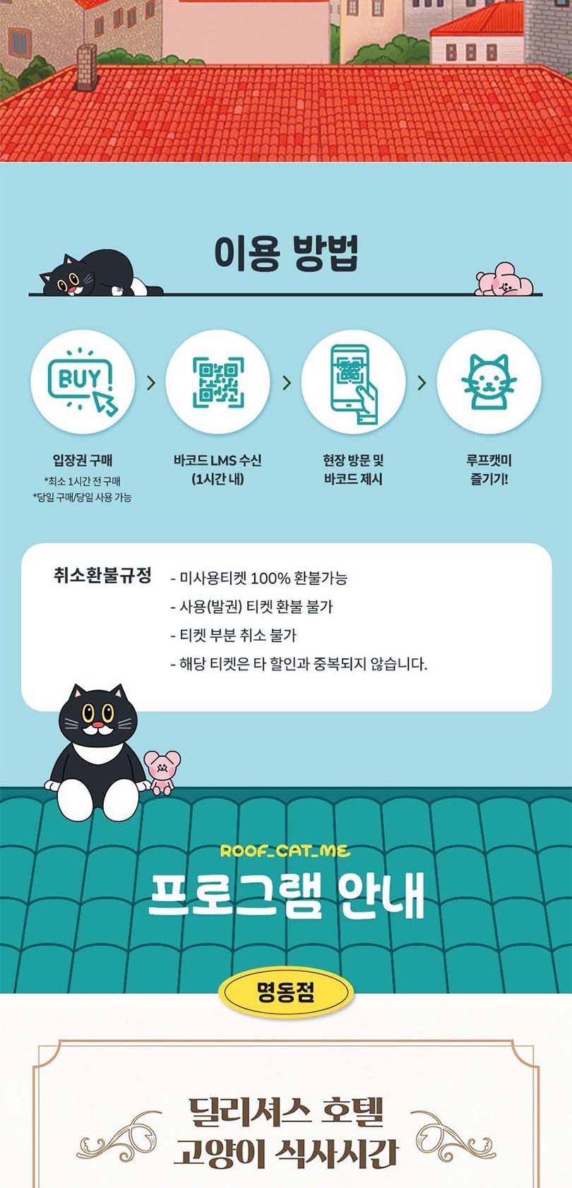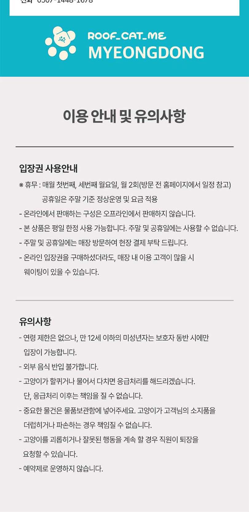 * 고양이를 괴롭히거나 잘못된 행동을 계속 할 경우 직원이 퇴장을 요청할 수 있습니다.