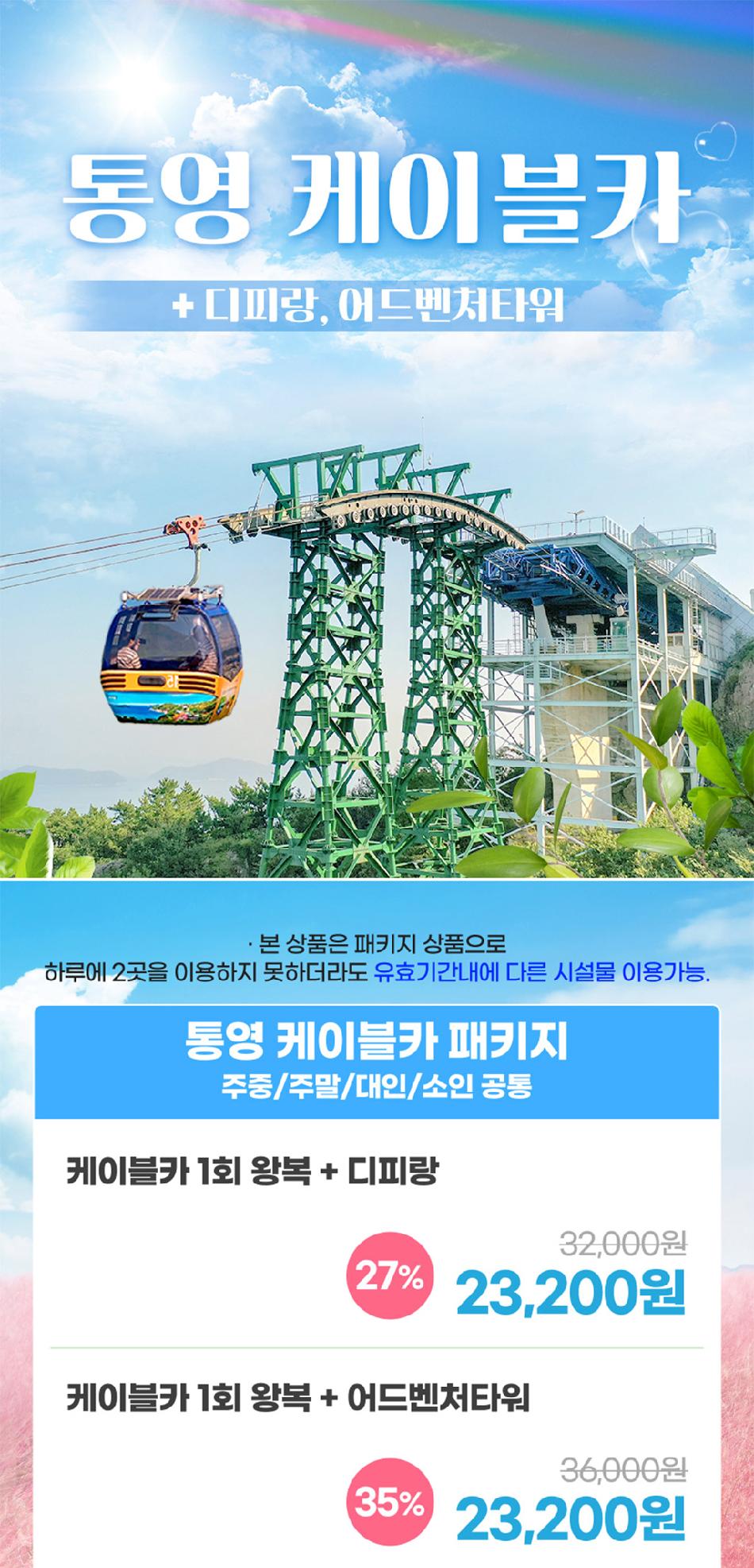 [경남] 통영 케이블카 1회왕복+디피랑/어드벤처타워 패키지