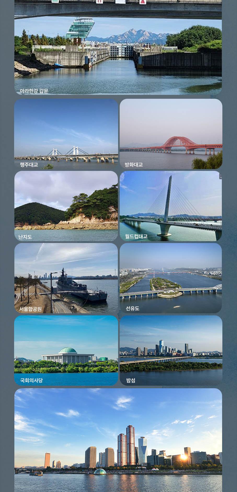 * 특히, 장마철에는 한강방류로 인해 아라뱃길 코스로 변경될 확률이 높습니다.