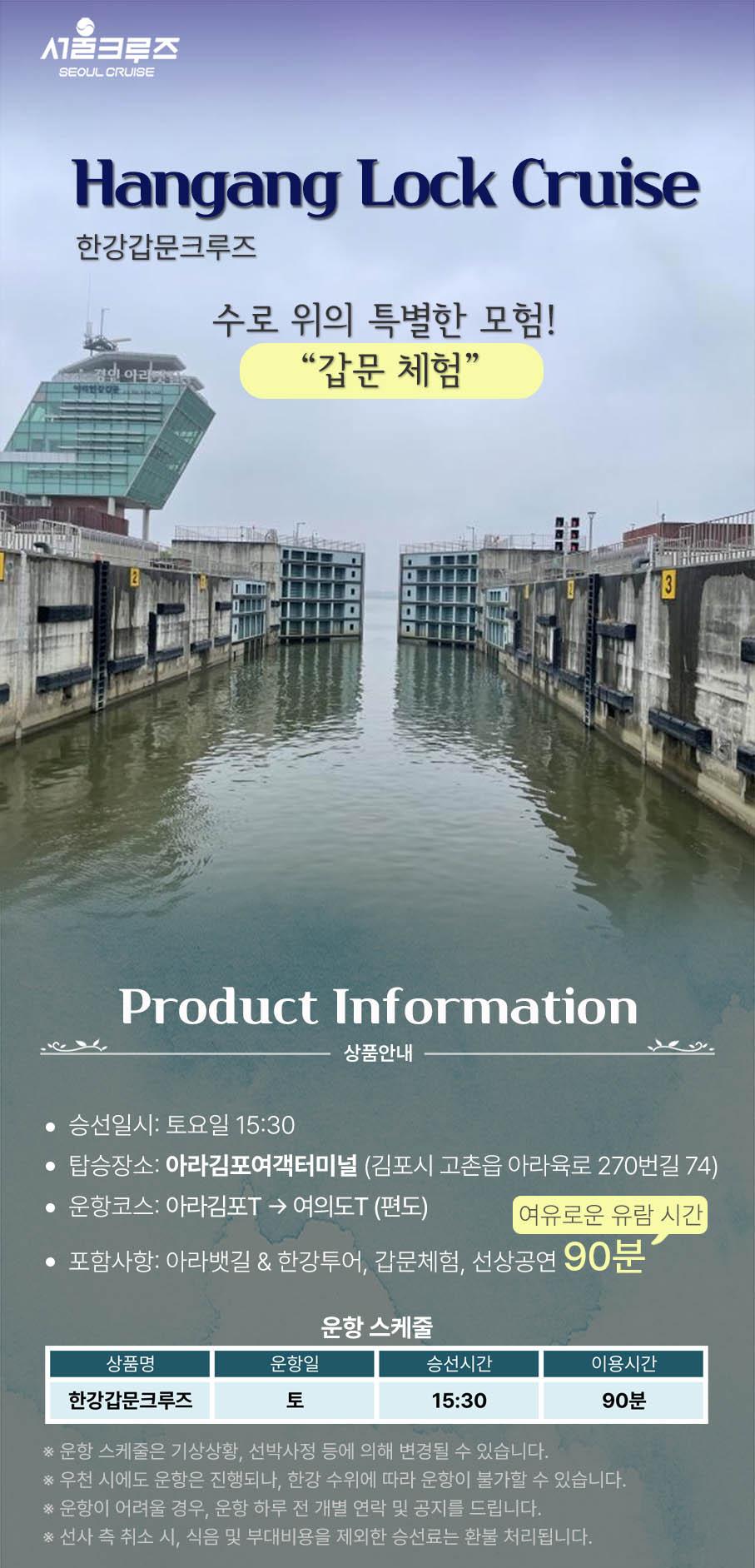 * ★ 포함사항 : 한강 크루즈 120분, 한강갑문체험, 선상공연관람
