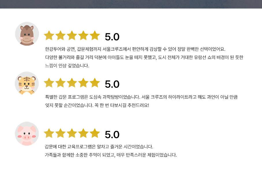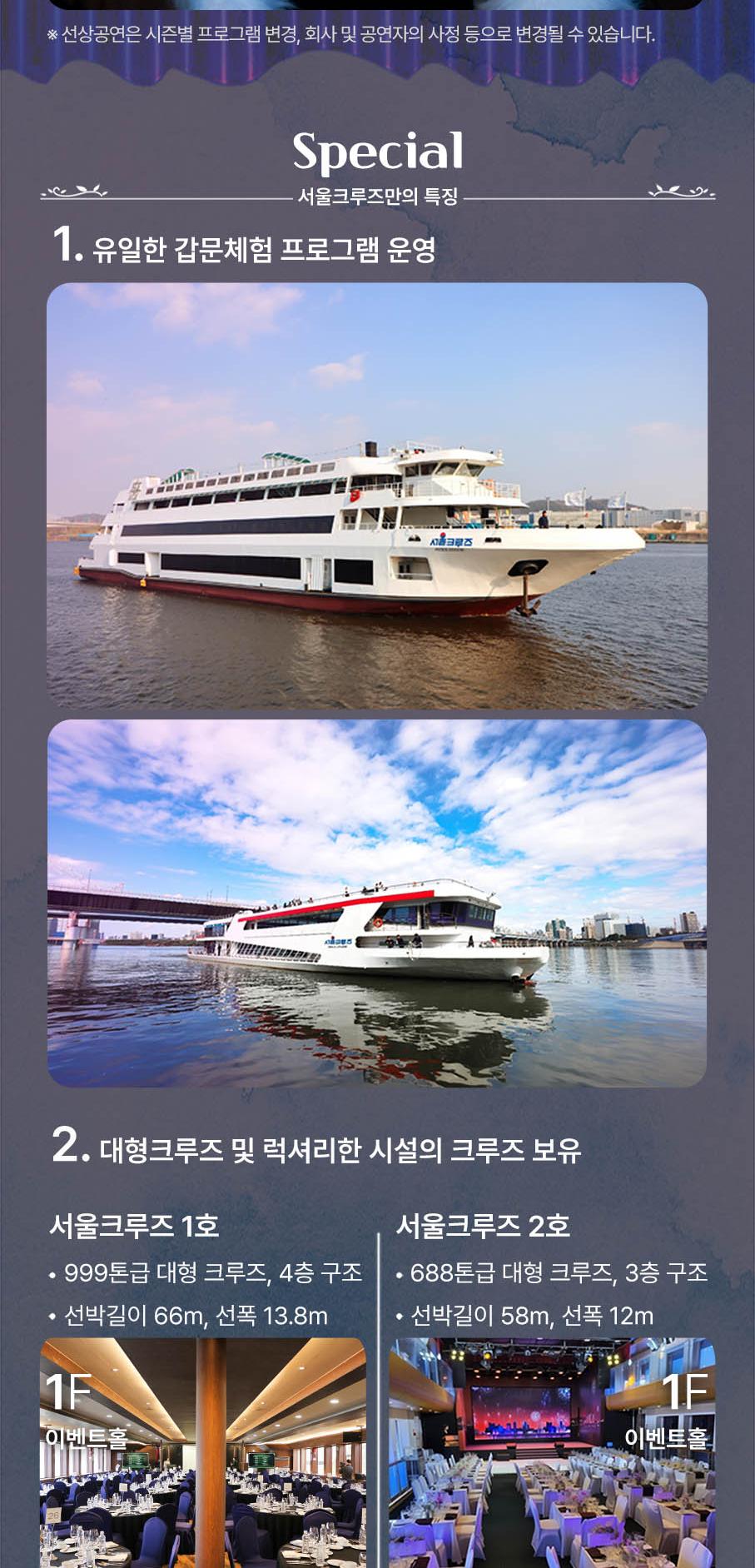 * ★한강 크루즈는 예약인원 50명 미만일 경우 취소될 수 있습니다.